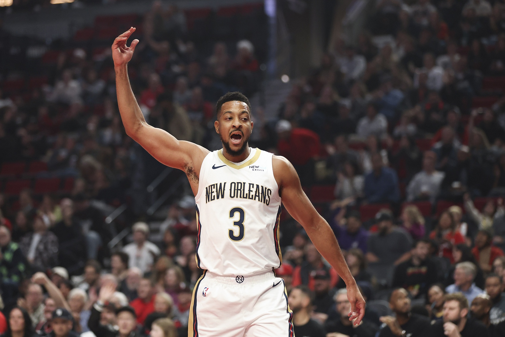本场比赛,CJ-麦科勒姆出场41分钟,25投16中,其中三分球12投7中,罚球6罚4中,得到43分7篮板2助攻。