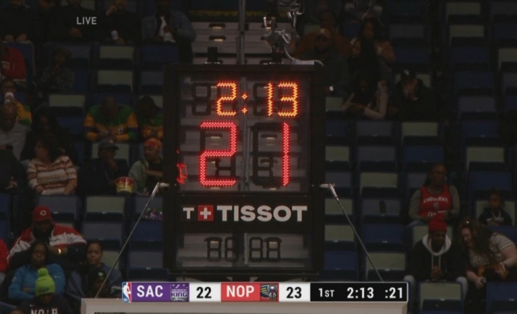 怎么还没修好...鹈鹕主场计时器坏了&工作人员甚至搬了新的出来!