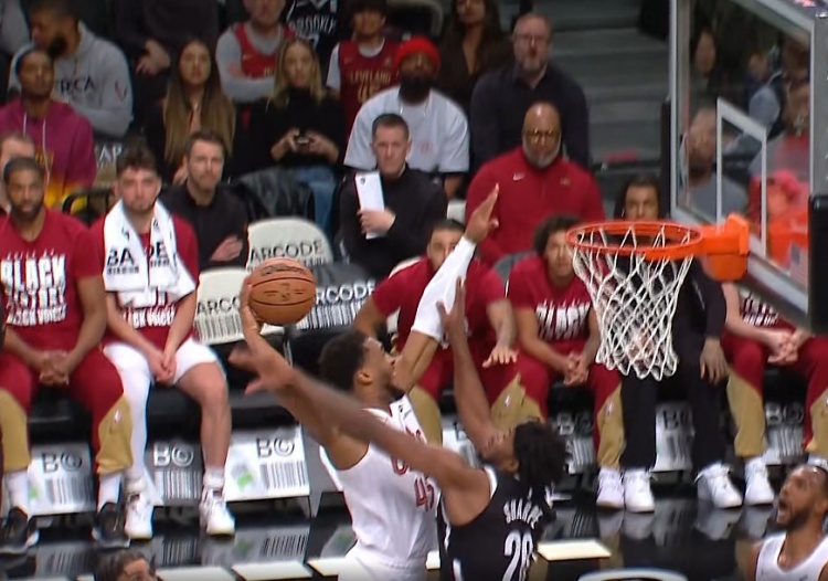 隔扣失败!米切尔三分不进 自投自抢欲隔扣夏普但被犯规