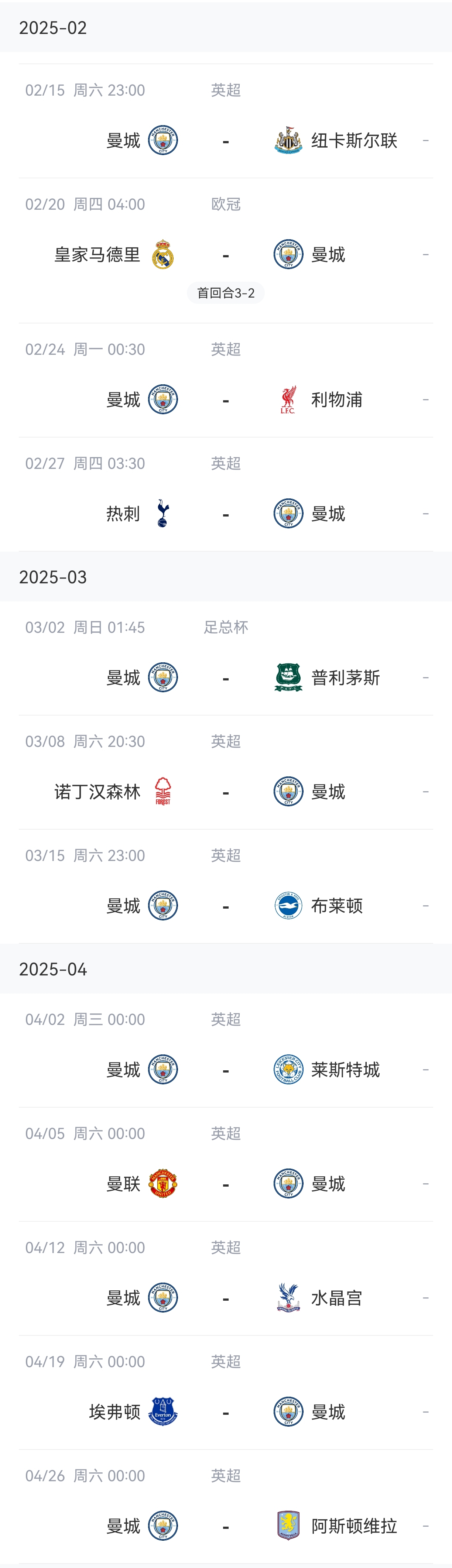 2025年02月12日 绝杀!皇马客场3-2曼城占先机 贝林补时制胜姆巴佩迪亚斯破门