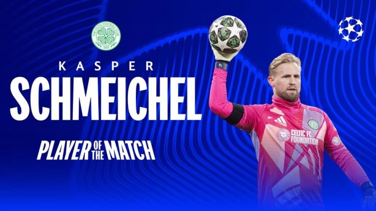 单场9次扑救!38岁门将小舒梅切尔当选欧冠官方本场最佳球员
