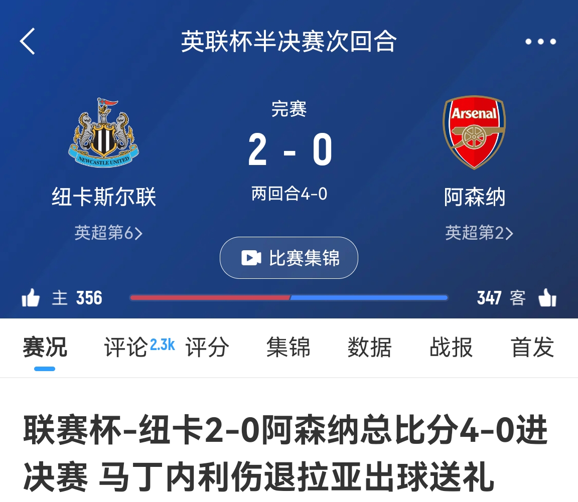 02月06日讯 英联杯半决赛次回合,阿森纳0-2纽卡两回合0-4惨遭淘汰。