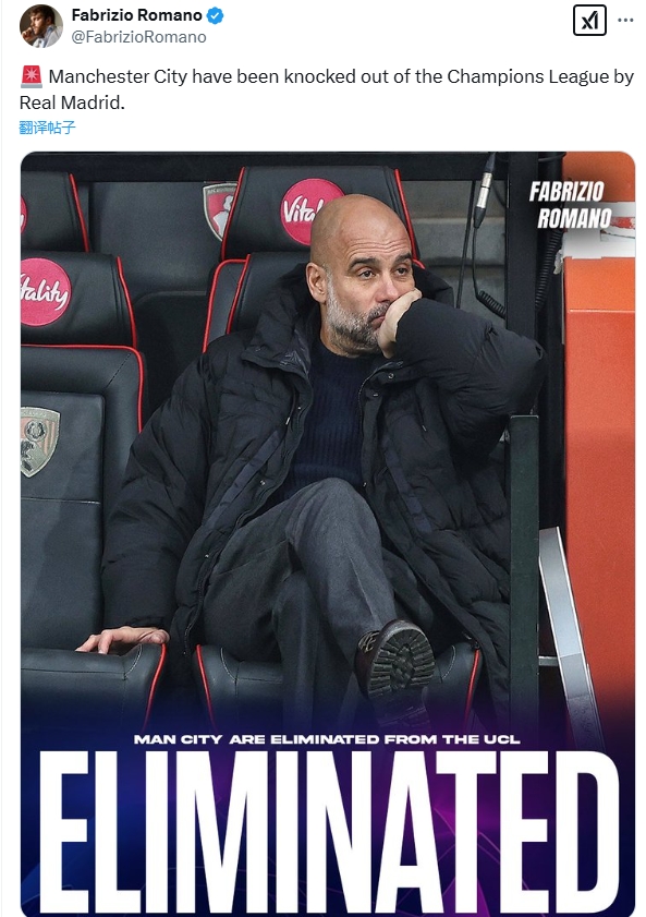 故意的还是?罗马诺第86分钟发文:曼城欧冠被皇马淘汰