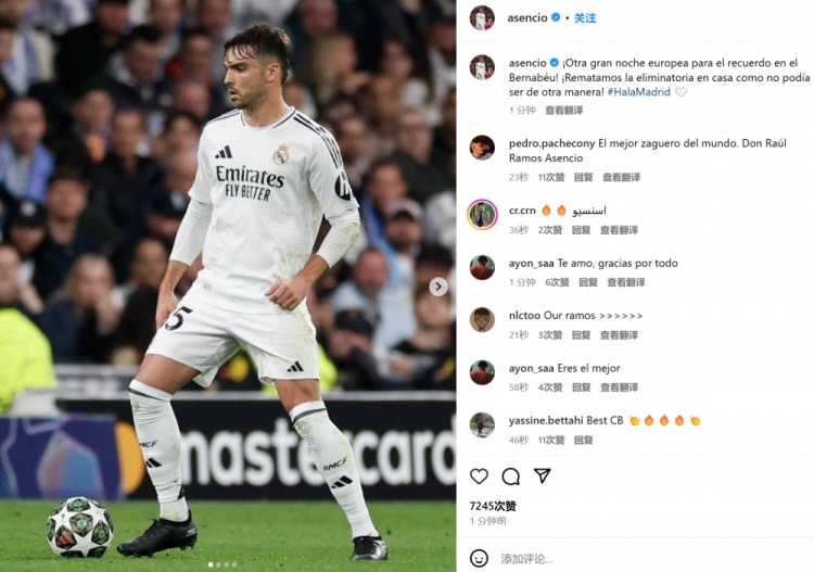 开场送助攻!小将劳尔-阿森西奥社媒:又一个值得纪念的欧冠之夜