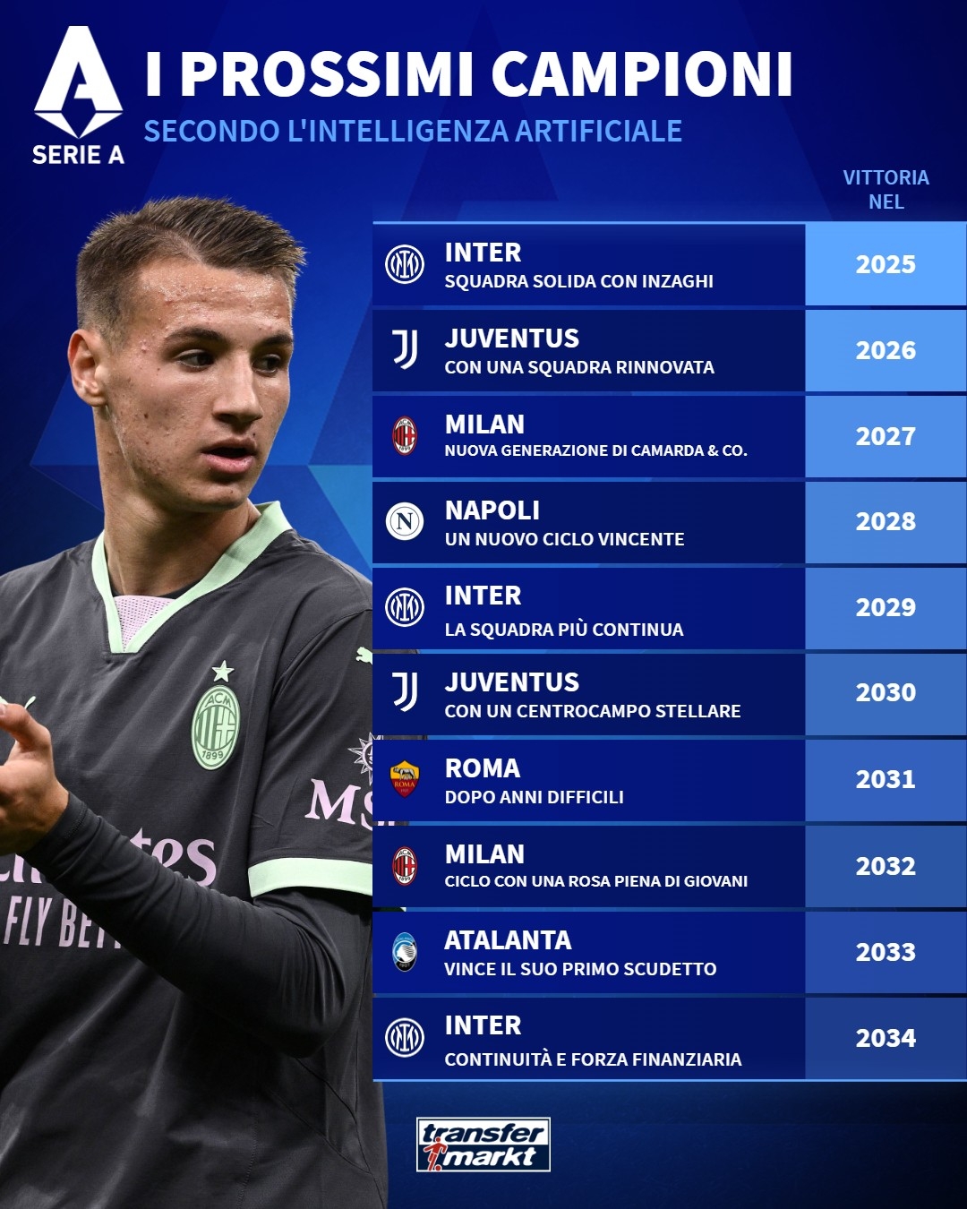 ChatGPT预测未来20年意甲:国米尤文4冠 米兰3冠 博洛尼亚都灵1冠