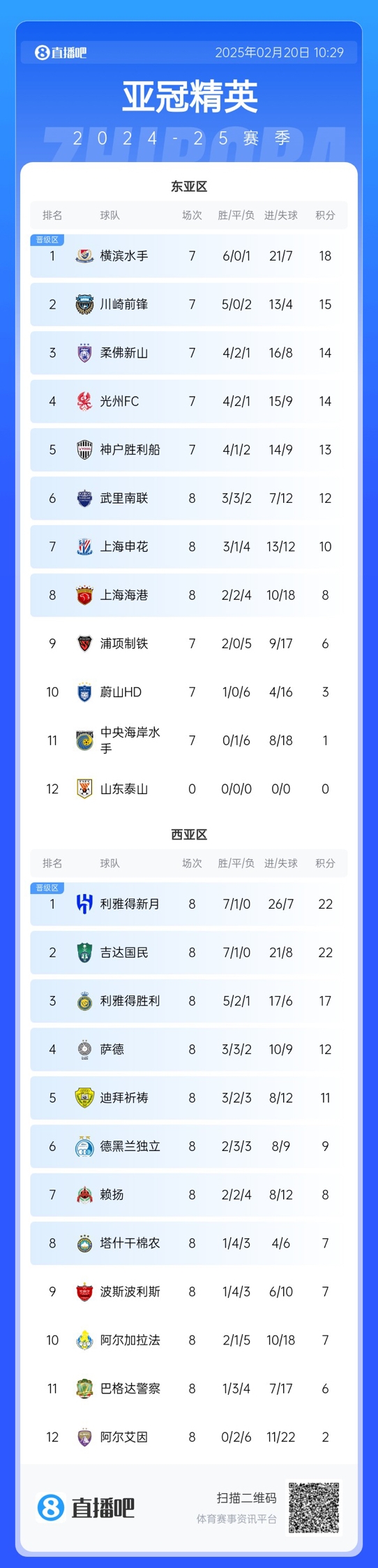 根据亚足联官方积分榜显示,浦项制铁原本4-2击败泰山的比赛显示“取消”,球队积6分排名第9,落后上海海港,无缘淘汰赛。