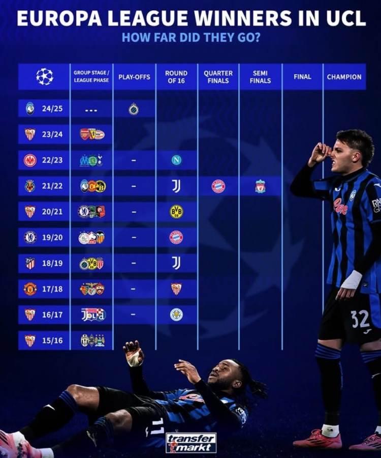 女神出局!近10年欧联杯冠军6次折戟欧冠16强,黄潜打进四强最佳