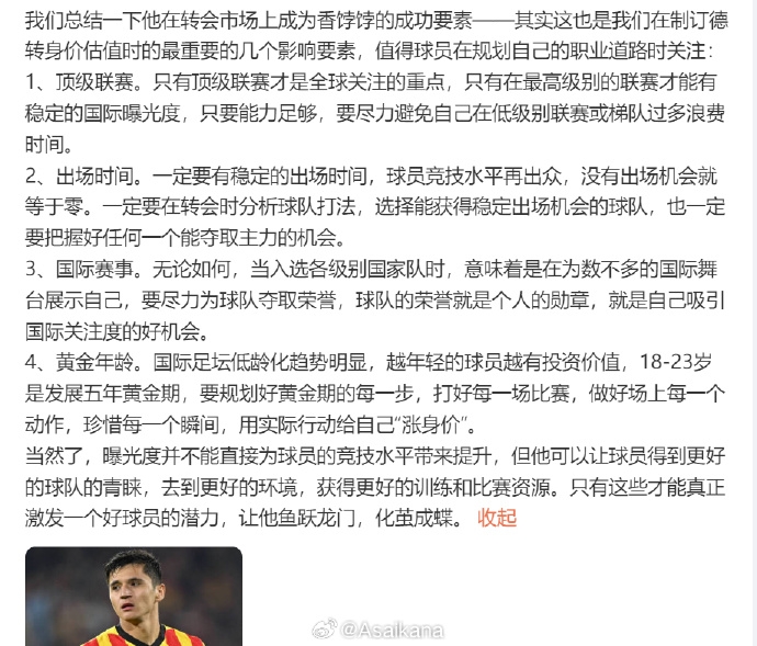 我之前写了篇介绍胡桑诺夫的长微博,提出了一个球员曝光度对于球员职业生涯和能力影响的问题。其实当时有很大程度上是写给准备迎接各级大赛的各年龄段国足,尤其是当时正在备战亚青赛的国青队员和家长们看的。很巧,我看到赛后有很多人也都在为国青球员们失去了在世界球探面前展现自己的机会而惋惜不已。一个有才华的球员,只有在足够的曝光度下,才能从被忽视的角落走向舞台的中央,迎接属于自己的机遇与挑战。只有当他站在更广阔的平台上,才能借助更强大的资源,迅速提升自我,释放潜力,达到职业巅峰。但是真的很可惜,可惜到我已经不想去回想下午那场球了。