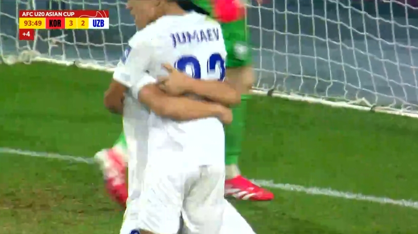 比赛第90、90+4分钟,1-3落后的乌兹别克斯坦国青连进两球,将比分扳成3-3,双方进入加时赛!